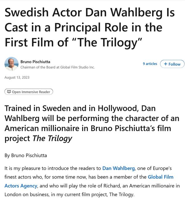 Citizen of Sweden and working on a major project with one of Europe's most talented directors, Mr Wahlberg has plans to come back to America soon and wishes to be directed again by Mr Louie Pozos